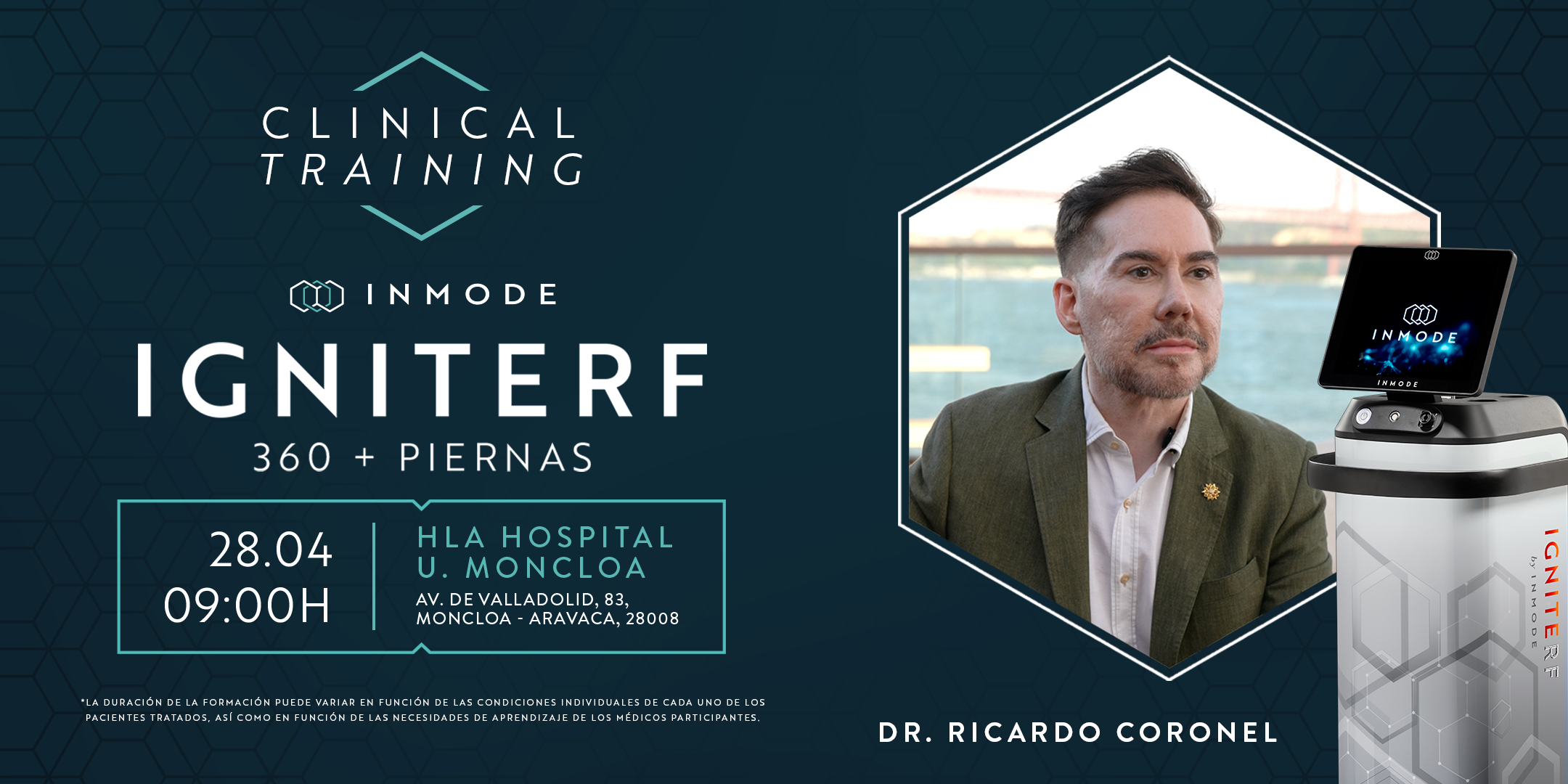 Este Clinical Training es una oportunidad única y exclusiva para profundizar en el uso de BodyTite Turbo y QuantmRF. Durante la formación se combinará teoría con demostraciones en vivo de la mano del Dr. Ricardo Coronel.