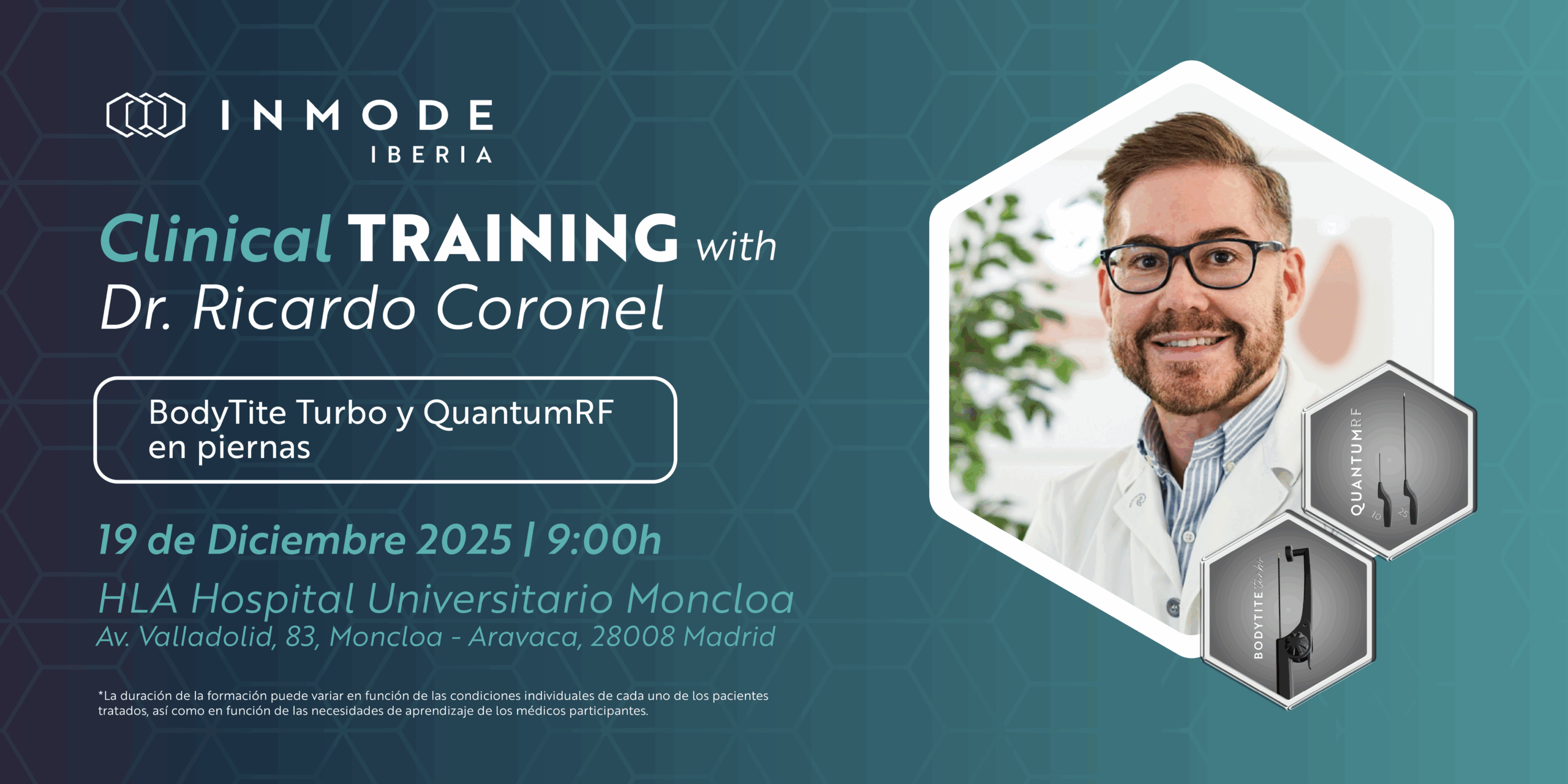 Este Clinical Training es una oportunidad única y exclusiva para profundizar en el uso de BodyTite Turbo & QuantumRF. Durante la formación se combinará teoría con demostraciones en vivo de la mano del Dr. Ricardo Coronel.
